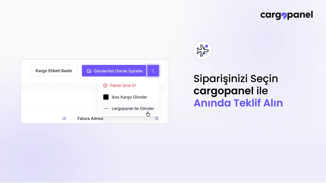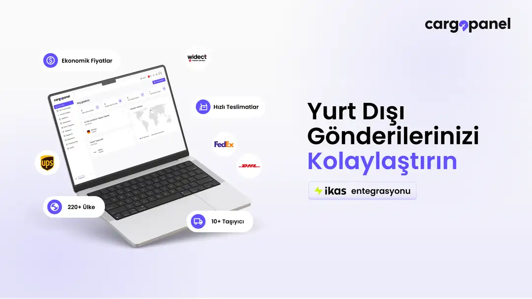 cargopanel ikas entegrasyonu, ikas mağazanızda oluşturulan yurt dışı siparişlerinizi cargopanel paneline aktarır ve gönderi süreçlerinizi tek merkezden yönetmenizi sağlar. Sipariş bilgileriniz entegrasyon aracılığıyla cargopanel’e iletilir ve gönderi oluşturma süreci doğrudan başlatılabilir.