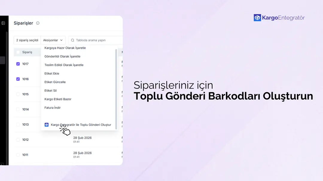 Tüm kargolarla entegre olun, iadeleri yönetin, toplu işlemler yapın, barkod oluşturun ve daha fazlası