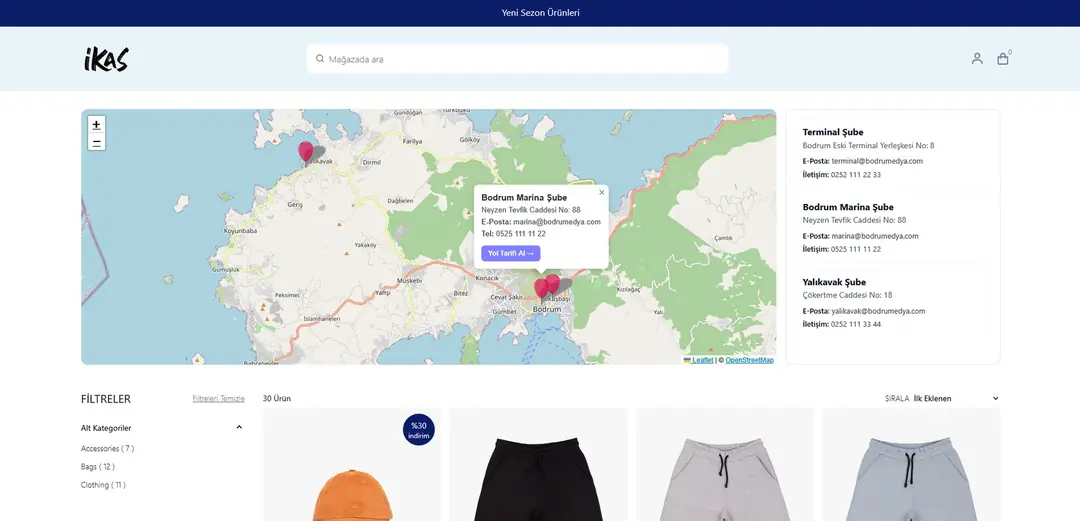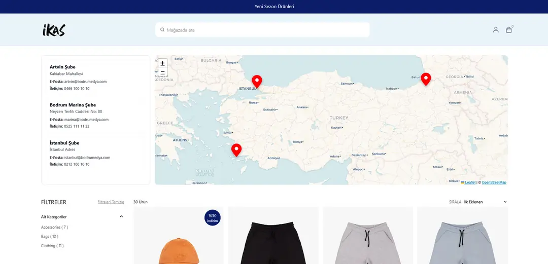 - Marka Prestijinizi Artırın: Sıradan listeler yerine, ikas e-ticaret sitenizin tasarımına uygun, modern ve profesyonel bir harita deneyimi sunun.
