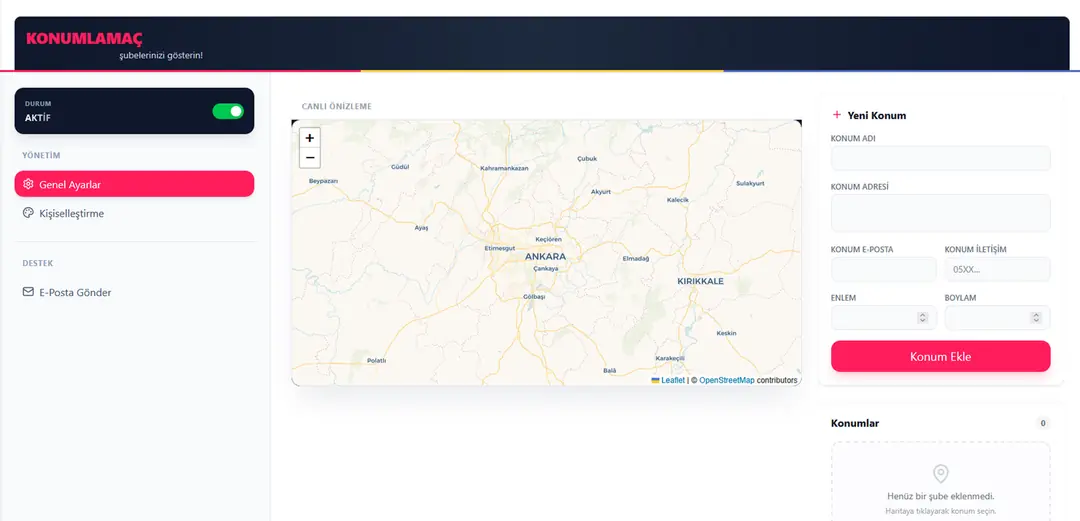 Müşterilerinize şubelerinizi interaktif, şık ve premium bir harita üzerinde göstererek onlara güven verin.