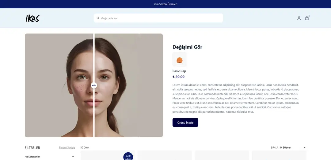 - Split (Ürün) Modu: Sadece görseli göstermekle kalmayın; yanına ürün adı, fiyatı ve "Satın Al" butonu ekleyerek müşteriyi anında alışverişe yönlendirin.